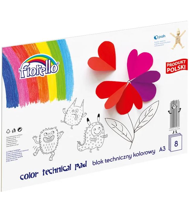 Blok techniczny kolorowy Fiorello A3 8 kartek