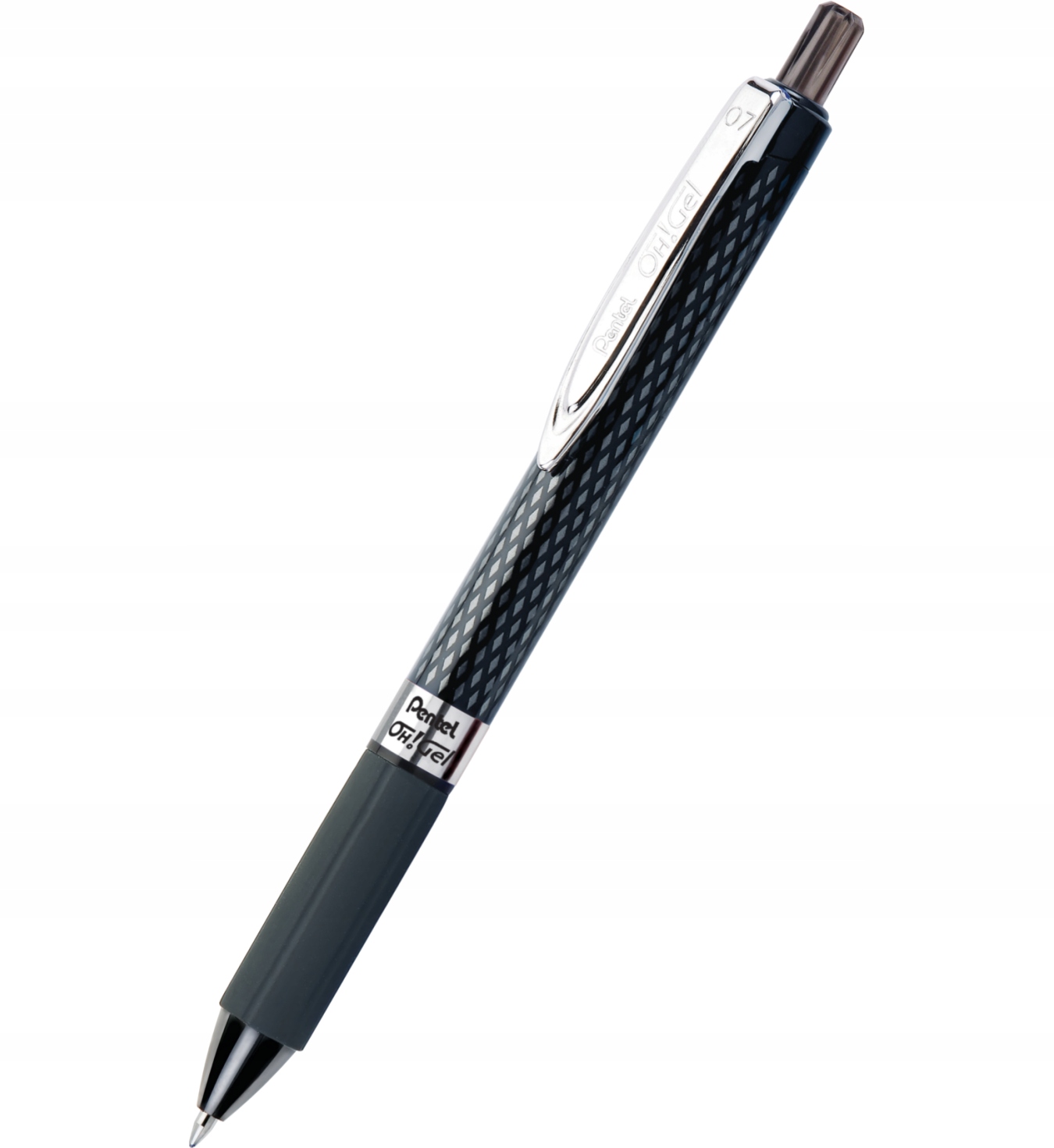 Długopis żelowy OH! Gel do częstego pisania w biurze i szkole. Bezkwasowy, pigmentowy, szybkoschnący tusz żelowy o bardzo ciemnym kolorze, nie blaknie, nie rozmazuje się, jest odporny na szkodliwe działanie czynników zewnętrznych (jest światło- i wodoodporny). Gładki przepływ tuszu do końcówki zapewnia lekkie pisanie. Korpus z motywami rombu w ciemnej stylistyce tła ze srebrnymi wykończeniami. Solidna obudowa dopasowuje się do ręki – gumowy uchwyt (bez lateksu) zabezpiecza palce przed ślizganiem. Dostępny w trzech wyrazistych kolorach: czarnym, niebieskim, czerwonym. Na wkłady wymienne KFR7. Model w atrakcyjnej cenie.