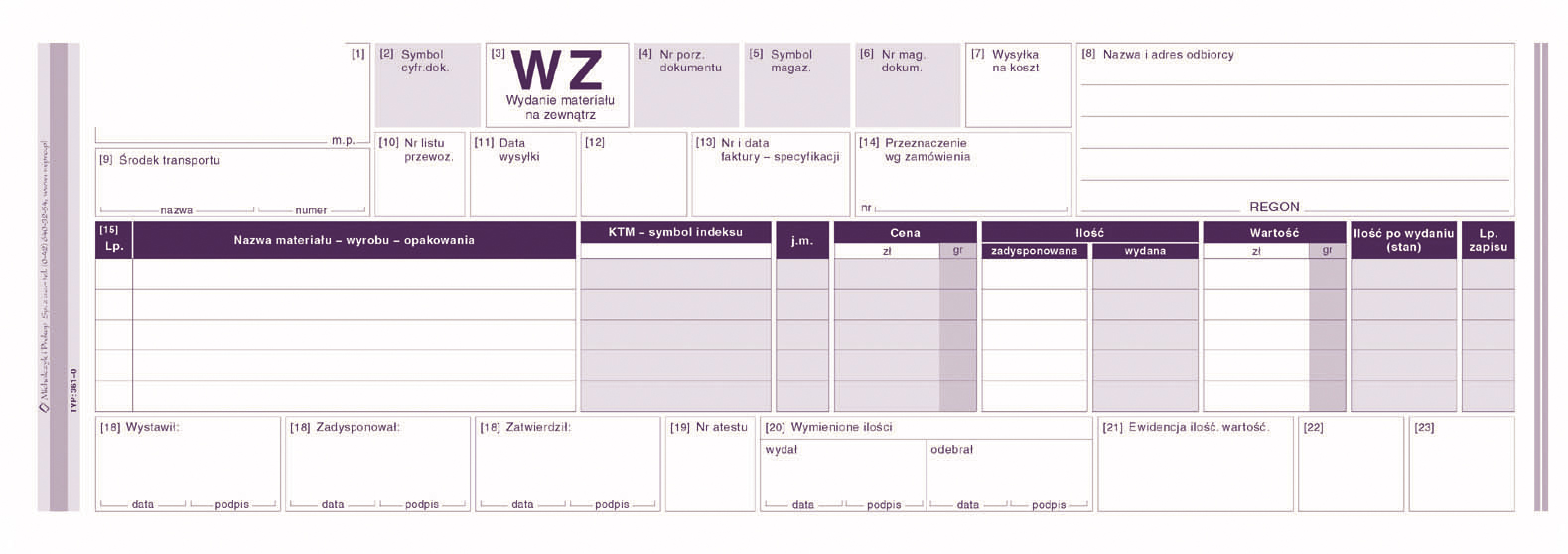 Druk WZ WYDANIE MATERIAŁU NA ZEWN 1/2 A4 typ 361-0