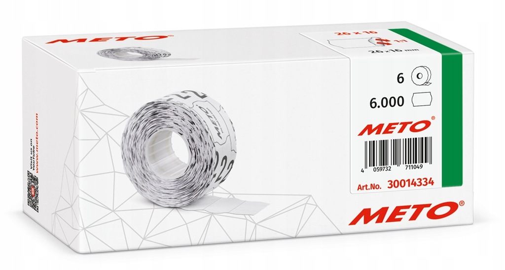 Etykiety cenowe w rolce Meto, do metkownicy dwurzędowej, 26×16 mm, 1000 sztuk, 6 rolek, biały