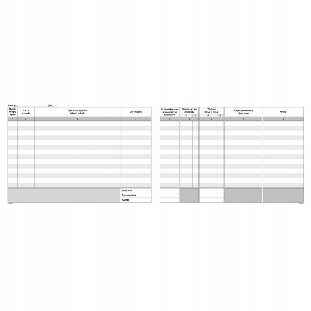 Ewidencja przebiegu poj,K17