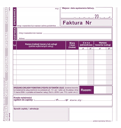 • Zastosowanie: faktury i inne dokumenty wynikające z przepisów o podatku od