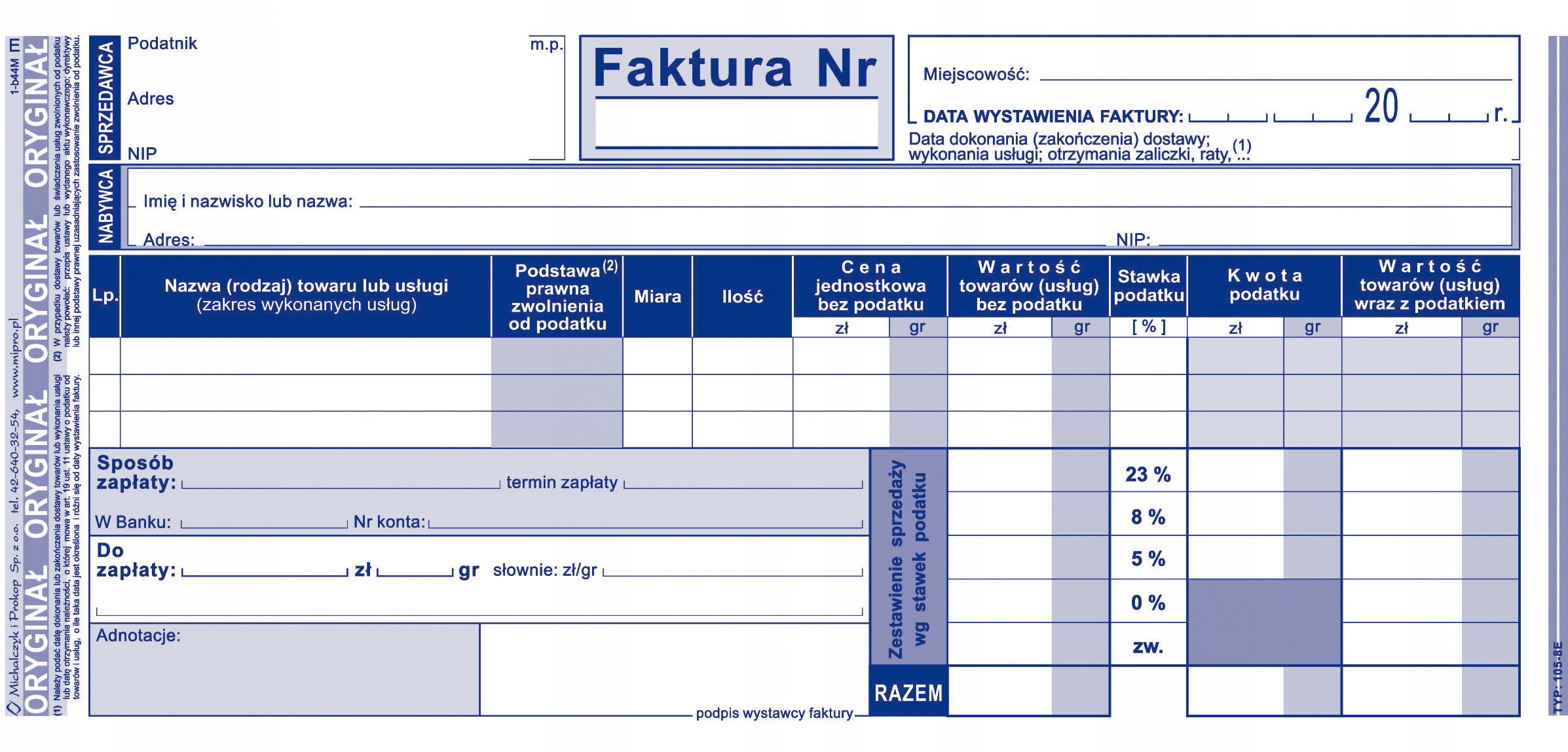 Faktura VAT A4 1/3 105-8E pełna