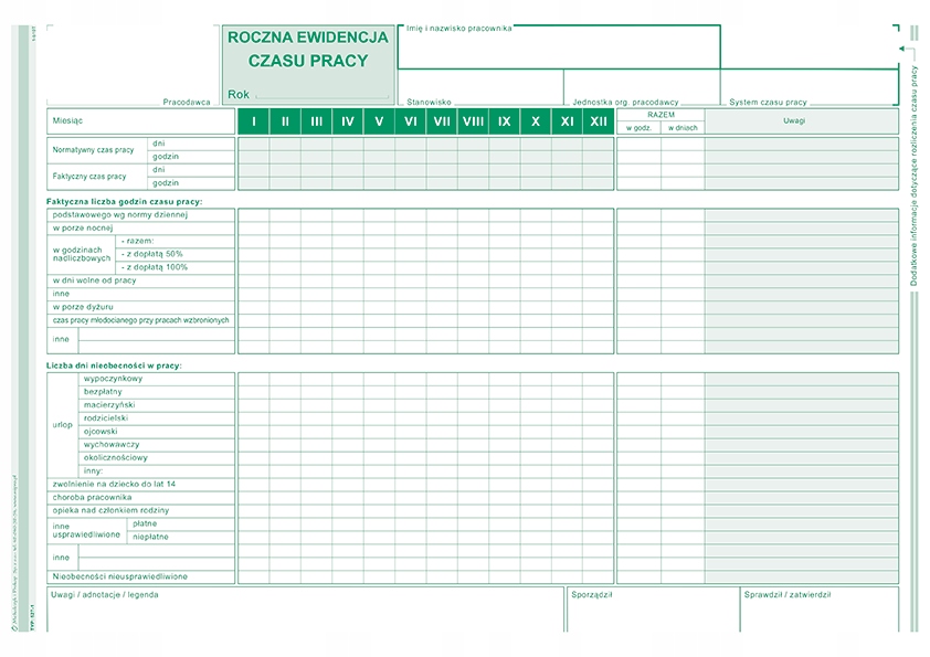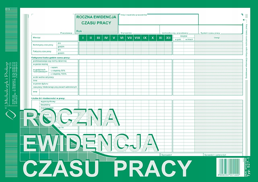 Roczna ewidencja czasu pracy MICHALCZYK 527-1