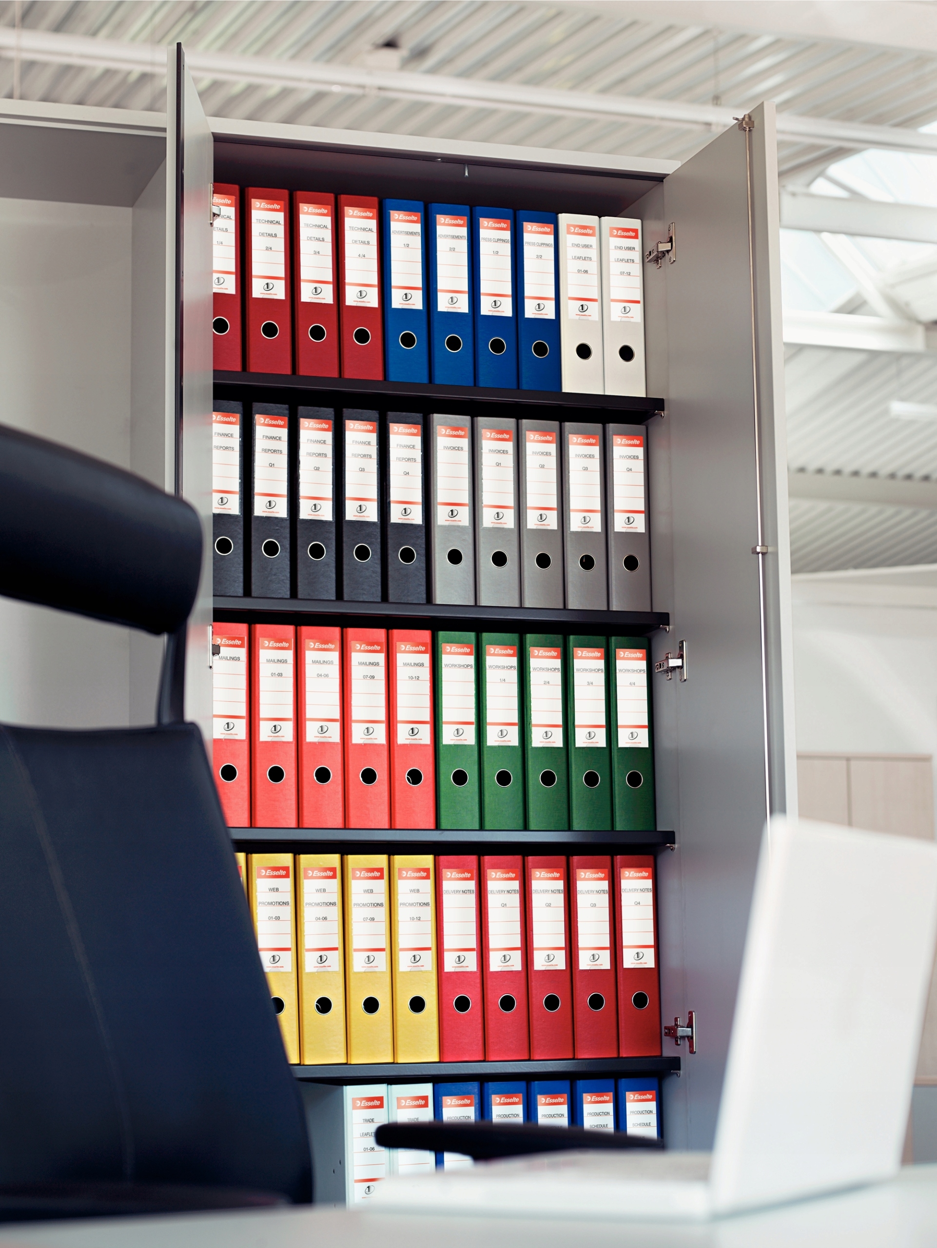 - Na grzbiecie kieszeń na wymienne etykiety służące do opisu zawartości.