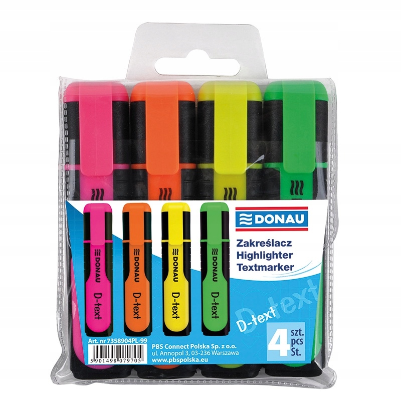 Zakreślacz DONAU D-TEXT 1-5 mm mix 4 kolory