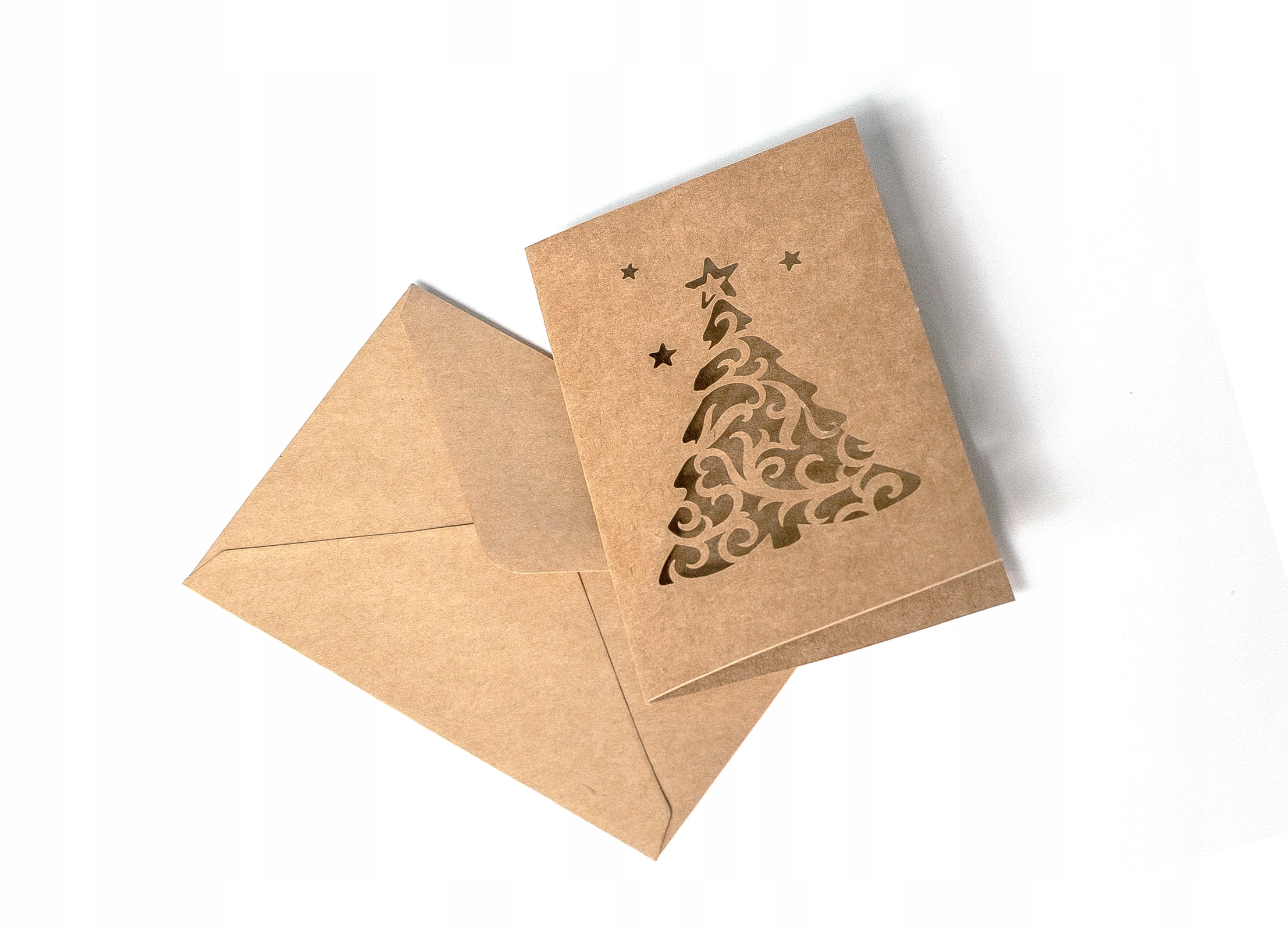 - Opakowanie zawiera: 5 złożonych kart z wyciętą choinką + 5 sztuk kopert 70x100mm.